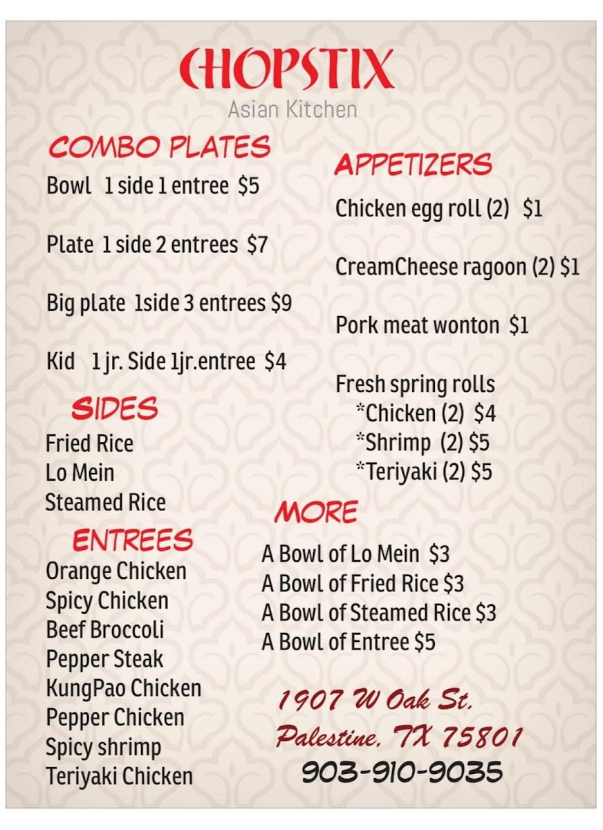 Introducing Chopstix Asian Kitchen, a delightful culinary destination located at 1907 W E Oak St, Palestine, TX. This charming eatery stands out for its authentic and freshly prepared Asian dishes, offering a menu that emphasizes quality and flavor.