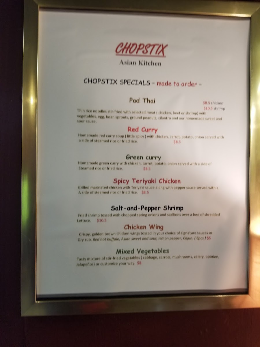 With rave reviews praising its filling portions and fresh flavors, Chopstix is a local gem worth visiting for a quick yet satisfying meal. Experience warm service in a clean, inviting space that feels like home.